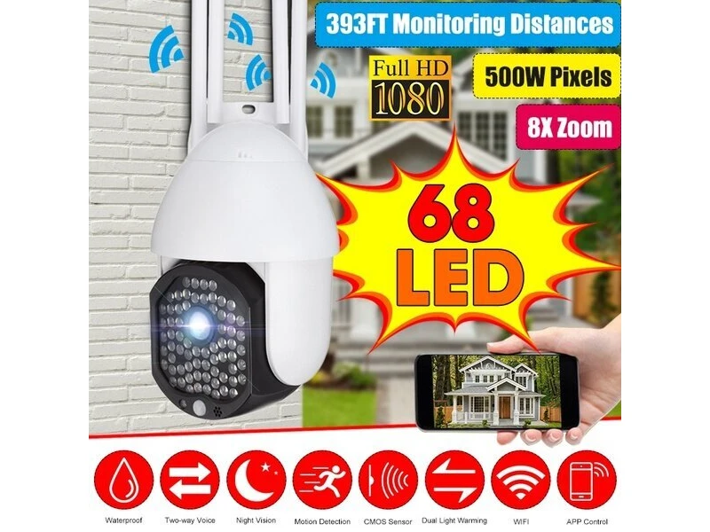 Ισχυρή αδιάβροχη κάμερα εξωτερικού χώρου Wifi Full HD 2 .0MP 68 LED 320 ° αυτόματα περιστρεφόμενη, θόλος νέας γενιάς! ΧΡΩΜΗ ΝΥΧΤΕΡΙΝΗ ΟΡΑΣΗ! Πλατύς! Τέλεια ποιότητα και νυχτερινή ηχογράφηση! Έως και 8 φορές ΖΟΥΜ! IP66 αντοχή στην υγρασία και το νερό! Το πιο ισχυρό και ποιοτικό μοντέλο που προσφέρεται μέχρι στιγμής είναι μόνο κοντά μας! Έξυπνο Tracking για αυτόματη περιστροφή και παρακολούθηση αντικειμένων κάμερας!
