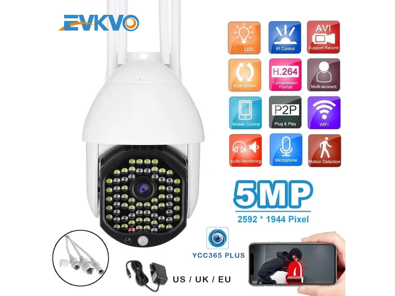 - Η κάμερα χρησιμοποιεί την εφαρμογή ycc365plus. Ολοκαίνουργιες περιστρεφόμενες (PTZ) 320° οριζόντιες και 90° κάθετες ασύρματες κάμερες WIFI IP Full HD με ανάλυση 1920x1080 FULLHD, 2,0 MP Lend, εστίαση 3,6 mm