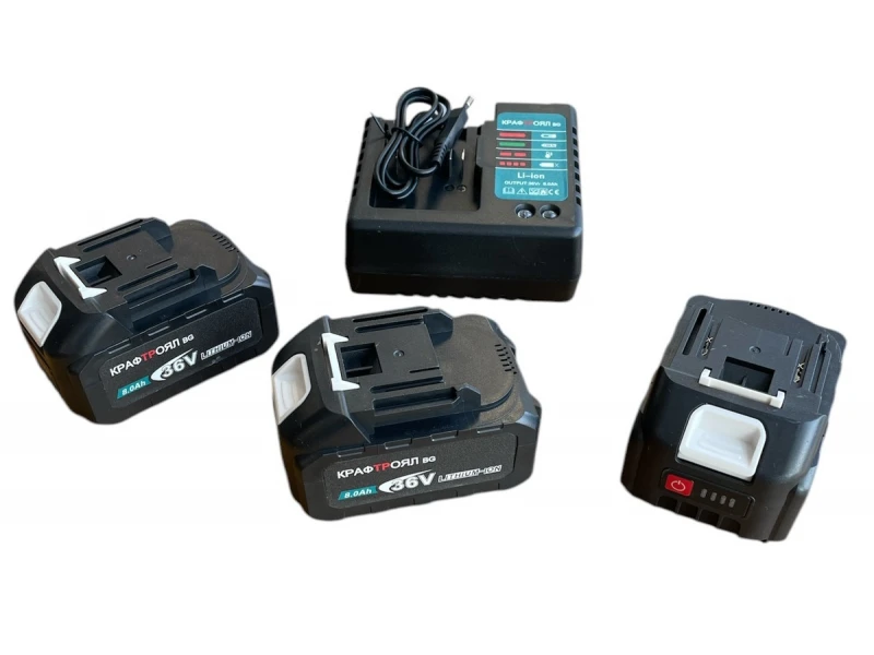 Σετ σφυροδράπανο μπαταρίας, γωνιακός μύλος, κλειδί, κατσαβίδι και λάμπα εργασίας με 3 μπαταρίες 36V 8Ah και φορτιστή KraftRoyal