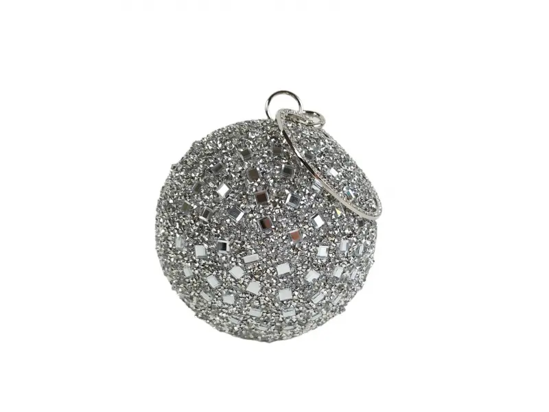 Ενδιαφέρουσα κομψή τσάντα σε σφαιρικό σχήμα - Επίσημη τσάντα χειρός με μία θήκη. - Άνοιγμα και κλείσιμο με μηχανισμό. - Ασημένια μπορντούρα. - Λαβή για μεταφορά στο χέρι. - Λαβή τύπου μακριάς αλυσίδας.