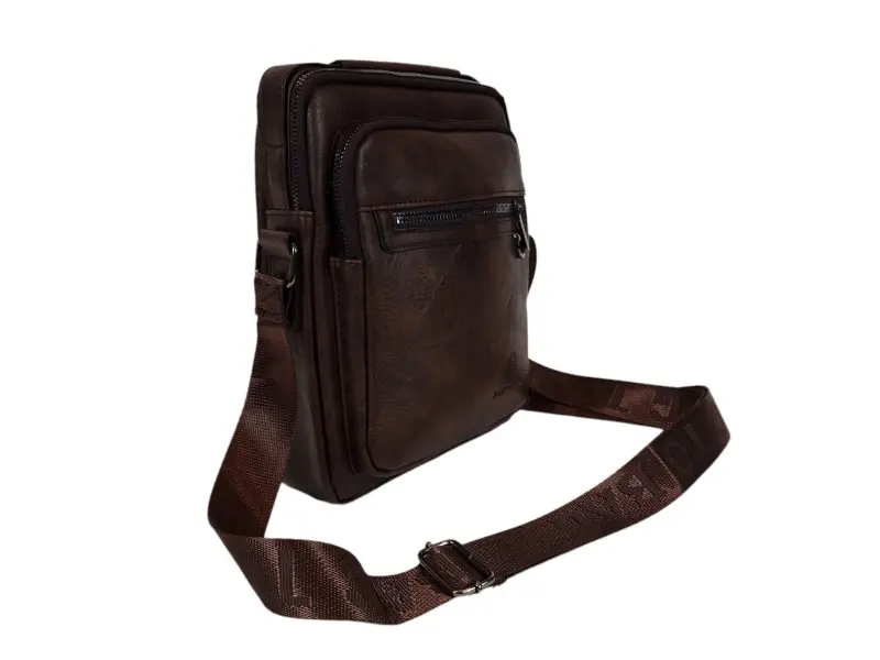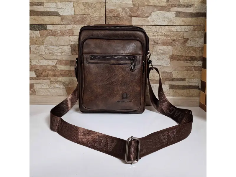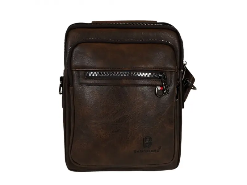 Ανθεκτική ανδρική τσάντα με μακριά ρυθμιζόμενη λαβή Ανδρική τσάντα κατασκευασμένη από ποιοτικό οικολογικό δέρμα σε σκούρο καφέ χρώμα. Άνετη τσάντα με μία κύρια θήκη με φερμουάρ, μικρή εσωτερική τσέπη με φερμουάρ, δύο μπροστινές τσέπες με φερμουάρ και πίσω τσέπη με φερμουάρ. Ανθεκτική ανδρική τσάντα με άνετη λαβή για μεταφορά στο χέρι και ρυθμιζόμενη μακριά λαβή.