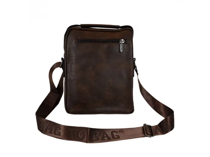 Ανδρική τσάντα κατασκευασμένη από ποιοτικό οικολογικό δέρμα σε σκούρο καφέ χρώμα. Άνετη τσάντα με μία κύρια θήκη με φερμουάρ, μικρή εσωτερική τσέπη με φερμουάρ, δύο μπροστινές τσέπες με φερμουάρ και πίσω τσέπη με φερμουάρ. Ανθεκτική ανδρική τσάντα με άνετη λαβή για μεταφορά στο χέρι και ρυθμιζόμενη μακριά λαβή.