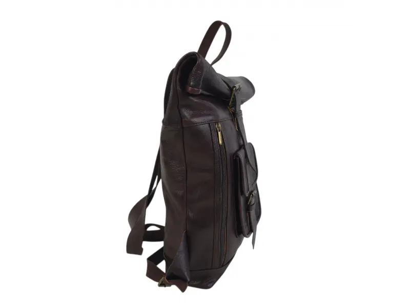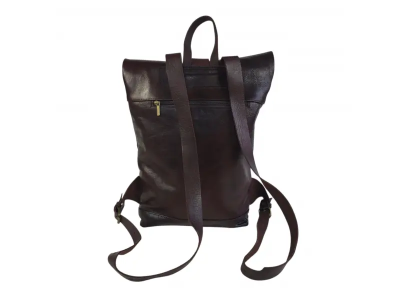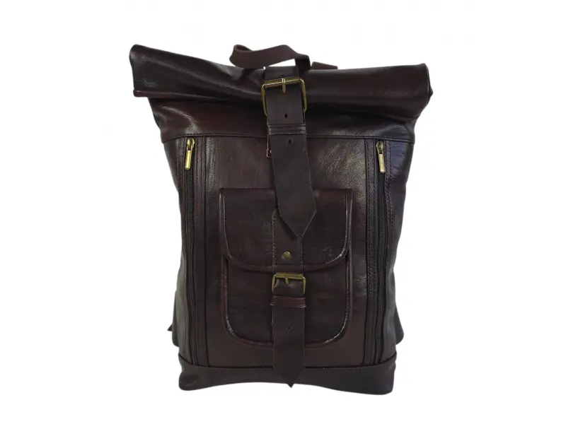 Σκούρο καφέ σακίδιο πλάτης από γνήσιο δέρμα υψηλής ποιότητας. Μεγάλο σακίδιο πλάτης με άνετη διάταξη και ιμάντες ώμου. Δερμάτινο σακίδιο πλάτης κατασκευασμένο στο Μαρόκο.
