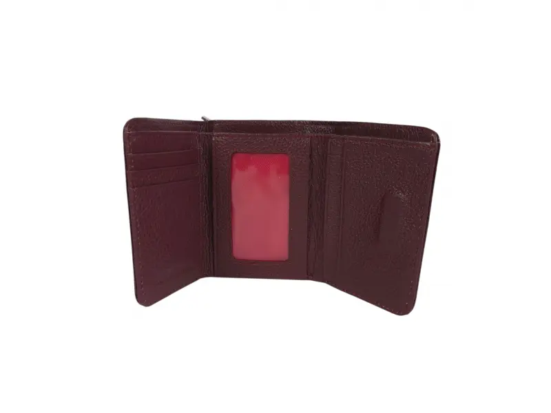 - Σκούρο κόκκινο πορτοφόλι από γνήσιο δέρμα και λουστρίνι.