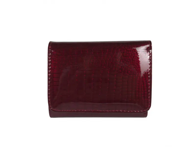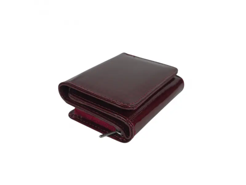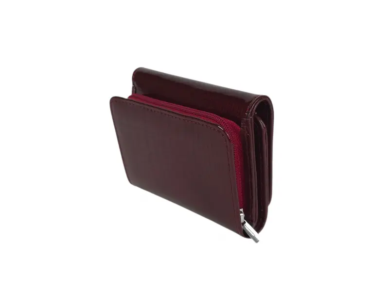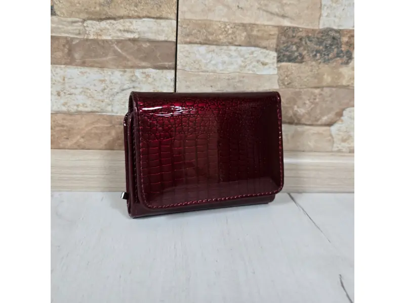 Μικρό γυναικείο πορτοφόλι από λουστρίνι με φινίρισμα λάκας - Σκούρο κόκκινο πορτοφόλι από γνήσιο δέρμα και λουστρίνι. - Μαγνητικό κλείσιμο. - Θέσεις για κάρτες και προσωπικά έγγραφα. - Θήκη για χαρτονομίσματα. - Τσέπη για κέρματα με φερμουάρ.