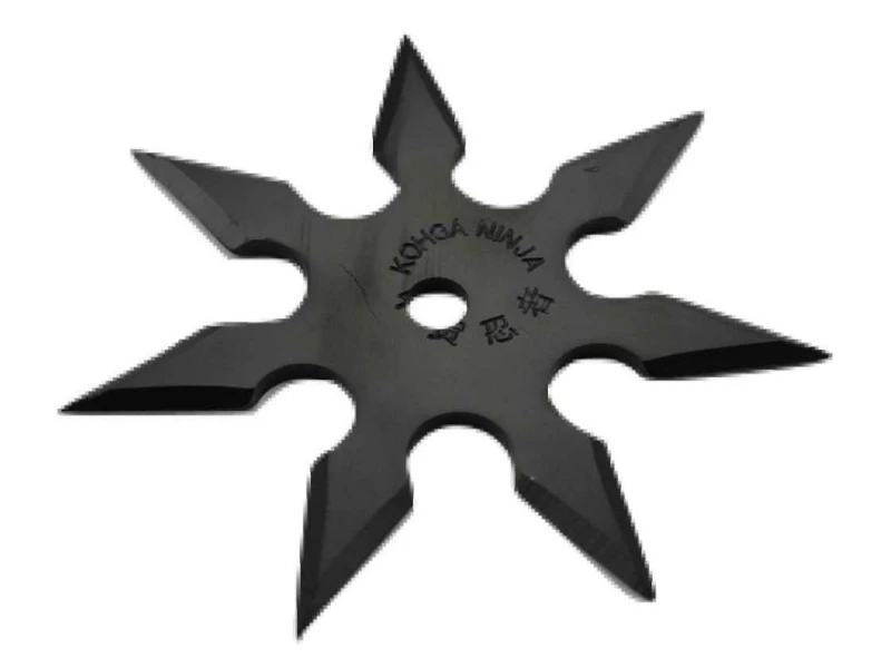 Πολύ καλοφτιαγμένο "battle star" (shuriken), τέλεια ισορροπημένο, σε "κλασική" θήκη για κρυφή χρήση ζώνης ή μέσω πρόσθετου ιμάντα σε κρυφό σημείο (στα άκρα). - Διαστάσεις - "διάμετρος" του κύκλου που περιγράφεται γύρω από κάθε αστέρι χωριστά - 95 mm. - Βάρος - περίπου 52 g με 8 άκρες - Λεπίδα - κάθε λεπίδα (άκρη) έχει σχήμα δόρατος, με σφηνοειδές ακόνισμα, ακόνισμα με λέιζερ, επιγραφή: KCHGA NINJA Αυτό το αστέρι, παρά τις πολύ καλές μηχανικές του ιδιότητες, όπως ο χάλυβας, και το υψηλό επίπεδο τεχνολογίας επεξεργασίας και πάνω από όλα φινιρίσματος, είναι προφανώς τύπος αναμνηστικού και πρέπει να χρησιμοποιείται για συλλεκτικούς σκοπούς.