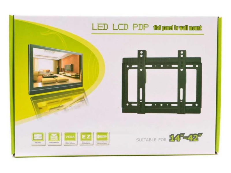 Ανθεκτική βάση τοίχου τηλεόρασης , κατάλληλη για οθόνες από 14 έως 42 ίντσες. Παρέχει ασφάλεια και σταθερότητα χάρη στην στιβαρή κατασκευή από χάλυβα. 🛠️
