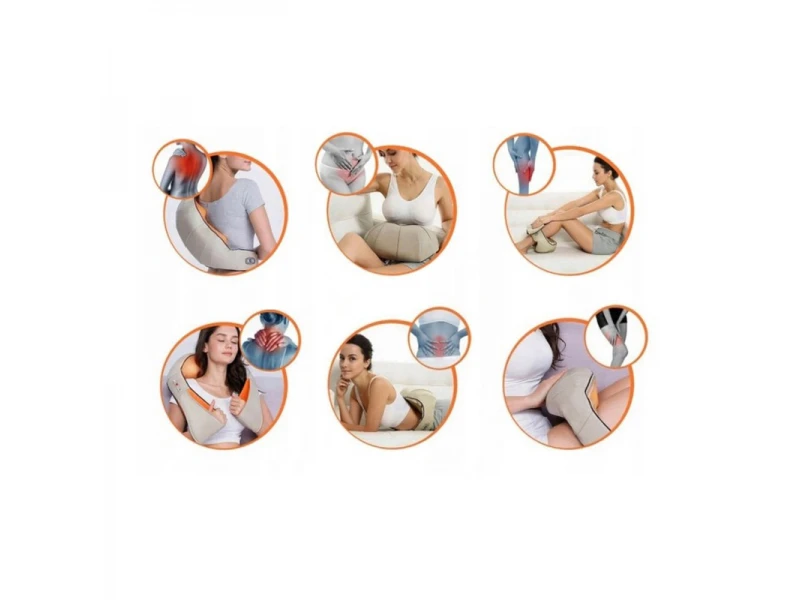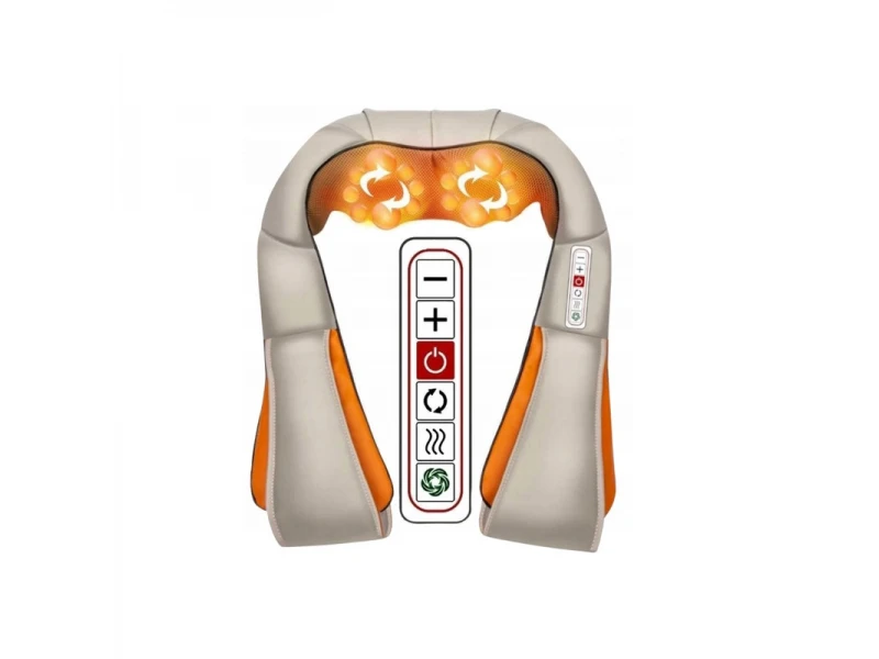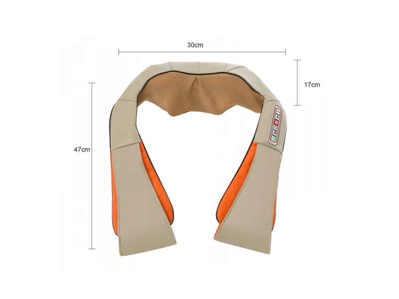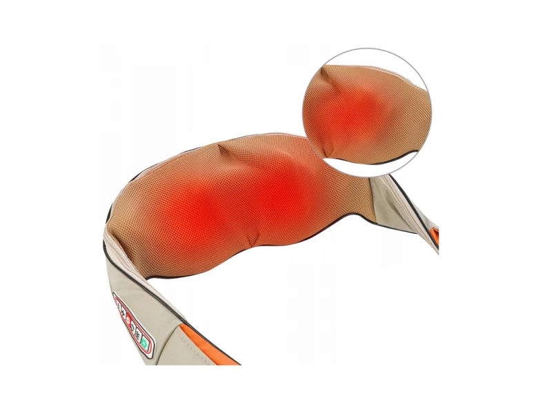Η συσκευή, χαλαρώνει τους τεντωμένους μύες, κάνοντας μασάζ με 2 περιστρεφόμενες κεφαλές με 16 μπάλες μασάζ (8 μπάλες η καθεμία). Οι μπάλες περιστρέφονται σε αντίθετες κατευθύνσεις δεξιά και αριστερά. Με τη χρήση του θερμικού μασάζ, επιτυγχάνονται άμεσα θεραπευτικά, αναλγητικά και χαλαρωτικά αποτελέσματα. Είναι κατασκευασμένη από μαλακό οικολογικό δέρμα και διχτυωτό ύφασμα που αναπνέει.