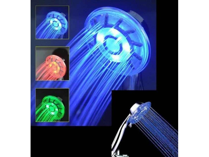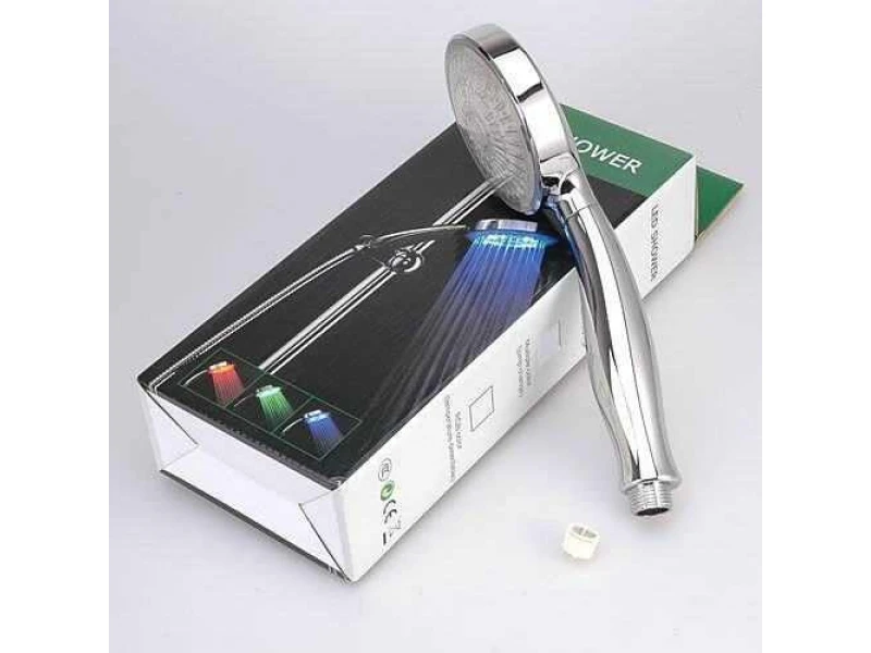 Ακουστικό LED ντους φωτιζόμενο σε 3 διαφορετικά χρώματα Το ακουστικό είναι στάνταρ και συμβατό με κάθε βρύση ντους. Το μόνο που έχετε να κάνετε είναι να αφαιρέσετε την παλιά κεφαλή ντους και να βάλετε τη νέα. Τρόπος εργασίας: Το ακουστικό διαθέτει αισθητήρα θερμοκρασίας και ανάβει σε διαφορετικό χρώμα ανάλογα με τη θερμοκρασία του νερού. Τα LED τροφοδοτούνται από μια μίνι γεννήτρια ενσωματωμένη στο ακουστικό, η οποία τροφοδοτείται από νερό και λειτουργεί χωρίς μπαταρίες. Σε θερμοκρασίες νερού κάτω από 25 ° C λάμπει πράσινο από 26 ° C έως 35 ° C λάμπει μπλε από 35 ° C έως 45 ° C ανάβει κόκκινο πάνω από 46 ° C αναβοσβήνει κόκκινο και μπλε, προειδοποιώντας για υψηλές θερμοκρασίες νερού. Χαρακτηριστικά: 9 LED 3 χρώματα φωτισμού: πράσινο / μπλε / κόκκινο (ανάλογα με τη θερμοκρασία του νερού) υλικό: ABS Επικάλυψη: ηλεκτρολυτική επιμετάλλωση Χρώμα: χρώμιο Το προϊόν είναι πιστοποιημένο σύμφωνα με τα ευρωπαϊκά πρότυπα: CE και ROSH Όταν το νερό ρέει, η βρύση του ντους θα ανάψει αμέσως και αυτόματα Δεν χρησιμοποιεί μπαταρίες!