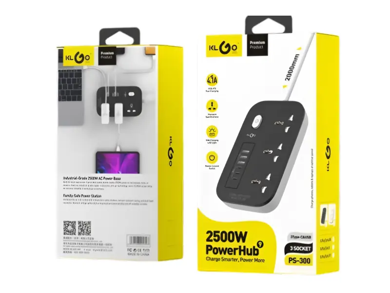 Το KLGO PS-300 PowerHub είναι μια πρακτική και αξιόπιστη λύση για την ταυτόχρονη τροφοδοσία και φόρτιση πολλαπλών συσκευών στο σπίτι ή στο γραφείο. Συνδυάζει υψηλή ισχύ έως 2500W , πολλαπλές πρίζες AC και ενσωματωμένες θύρες USB , με τις οποίες μπορείτε να φορτίσετε το τηλέφωνο, το tablet, τα ακουστικά ή άλλες συσκευές σας χωρίς επιπλέον προσαρμογέα .