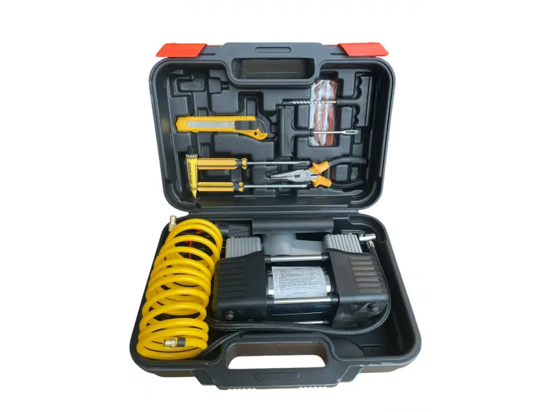 Ανακαλύψτε την ευκολία του συμπιεστή αυτοκινήτου μας με βαλίτσα και κιτ επισκευής ελαστικών! 🚗💨 Με ισχυρό μεταλλικό αμάξωμα και γρήγορη δράση, είναι ιδανικός για κάθε περίσταση στο δρόμο. Εξοικονομήστε χρόνο και χρήματα με τα χρήσιμα εργαλεία του κιτ. Να είστε προετοιμασμένοι για κάθε ταξίδι - παραγγείλτε τώρα και απολαύστε την ηρεμία σας στο δρόμο!