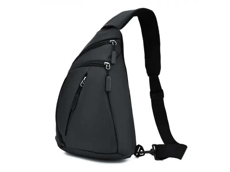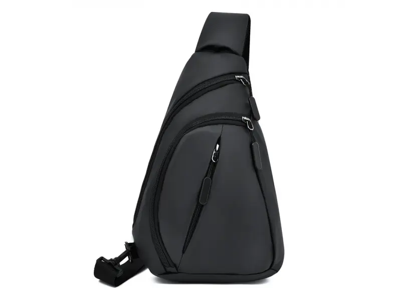 Ανδρική τσάντα στήθους από επικαλυμμένο ύφασμα - Ανδρική τσάντα από επικαλυμμένο ύφασμα. - Μια ανδρική τσάντα που μπορεί να φορεθεί στο στήθος, τον ώμο ή την πλάτη σαν σακίδιο πλάτης. - Μία κύρια θήκη με φερμουάρ. - Μικρή εσωτερική τσέπη χωρίς φερμουάρ. - Δύο μπροστινές τσέπες με φερμουάρ. Άνετη αναπνεύσιμη πλάτη. Ρυθμιζόμενος ιμάντας ώμου. - Δυνατότητα αλλαγής της κατεύθυνσης φθοράς.
