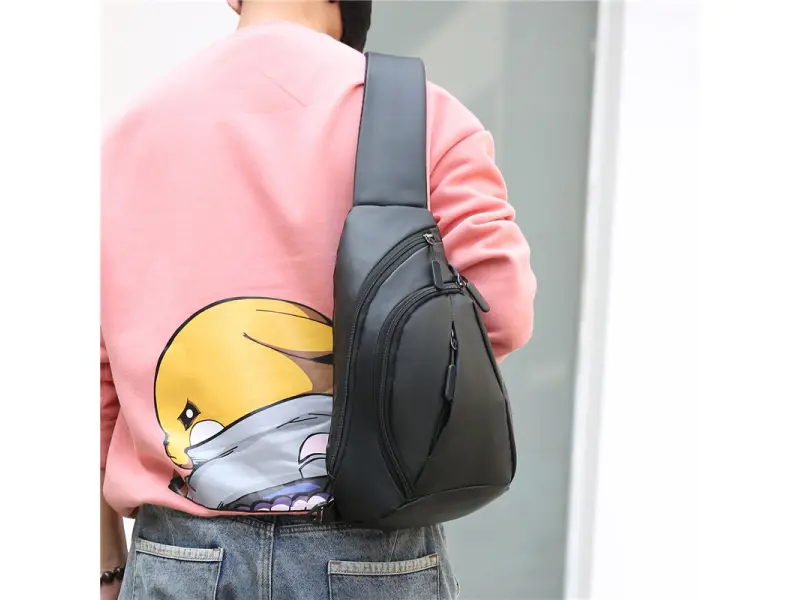 - Μια ανδρική τσάντα που μπορεί να φορεθεί στο στήθος, τον ώμο ή την πλάτη σαν σακίδιο πλάτης.