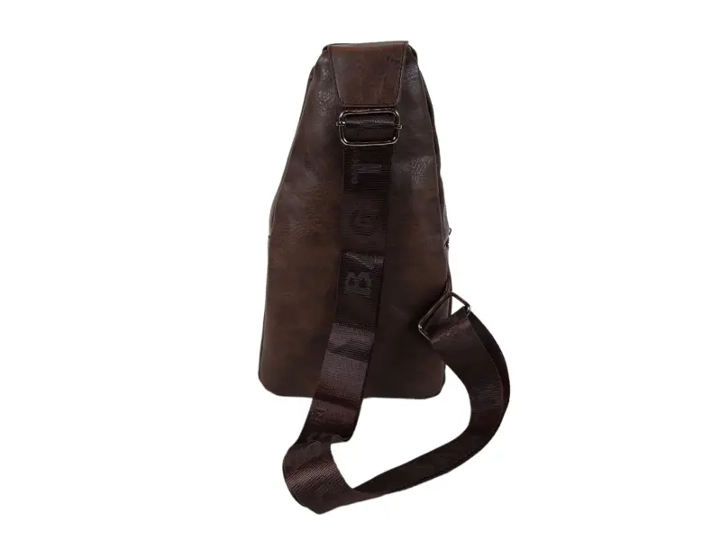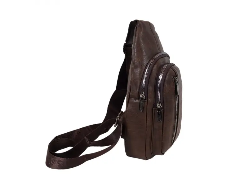 Άνετη ανδρική τσάντα - Ανδρική τσάντα από οικολογικό δέρμα. - Μια ανδρική τσάντα που μπορεί να φορεθεί στο στήθος, τον ώμο ή την πλάτη σαν σακίδιο πλάτης. - Μία κύρια θήκη με φερμουάρ. - Εσωτερική τσέπη χωρίς φερμουάρ. - Δύο μπροστινές τσέπες με φερμουάρ. Ρυθμιζόμενος ιμάντας ώμου.