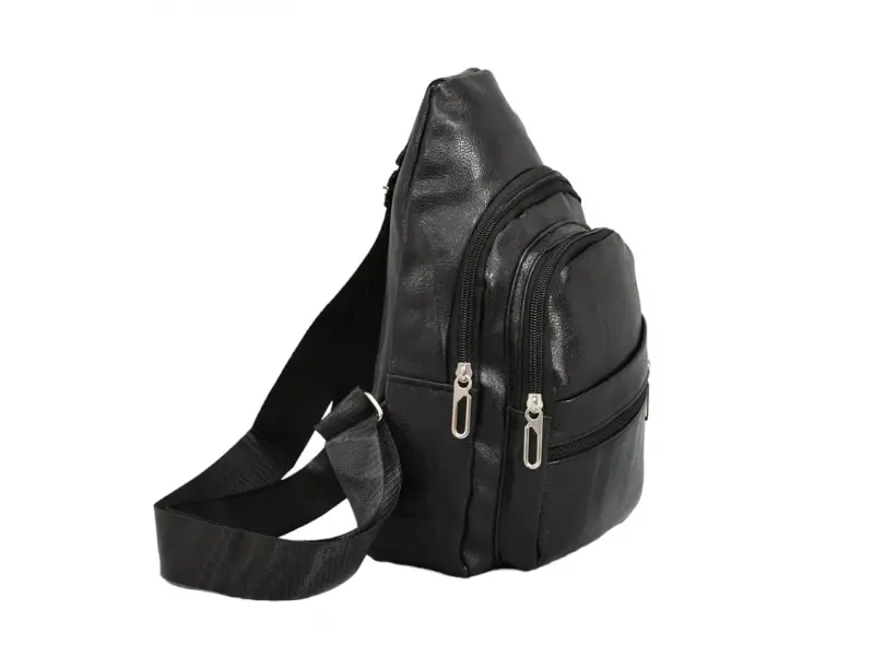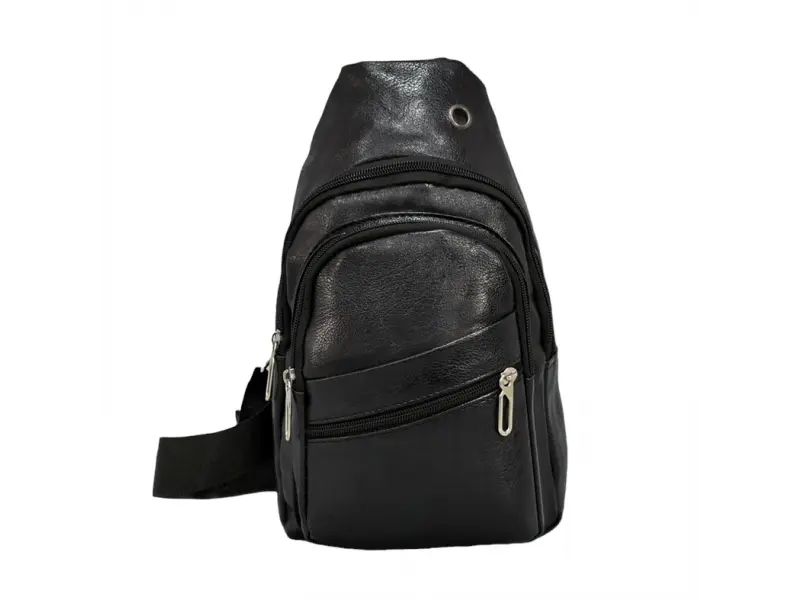 Φθηνή ανδρική τσάντα - Ανδρική τσάντα από οικολογικό δέρμα. - Μια ανδρική τσάντα που μπορεί να φορεθεί στο στήθος, τον ώμο ή την πλάτη σαν σακίδιο πλάτης. - Μία κύρια θήκη με φερμουάρ. Εσωτερική τσέπη με φερμουάρ. Δύο μπροστινές θήκες με φερμουάρ. Ρυθμιζόμενος ιμάντας ώμου.