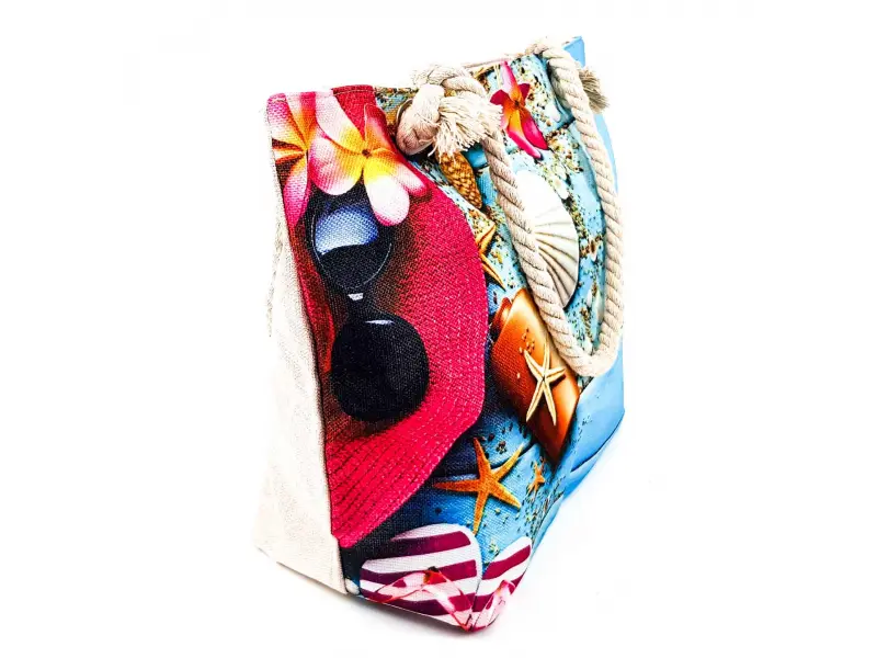 Τσάντα θαλάσσης. Νέα γυναικεία τσάντα θαλάσσης με μοτίβο κοχυλιού, καπέλο και γυαλιά. Ενδιαφέρουσα τσάντα θαλάσσης με στιβαρές και άνετες μακριές λαβές. Καλοκαιρινή τσάντα από το ηλεκτρονικό κατάστημα ePazar.bg