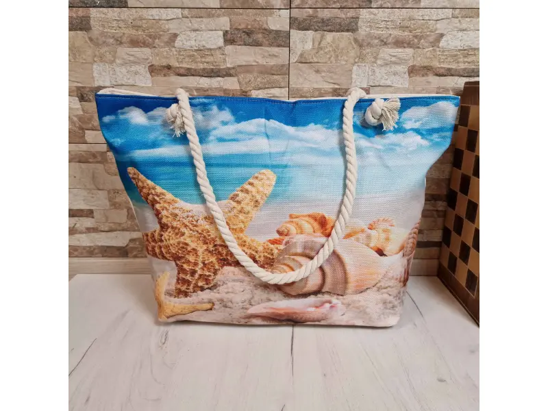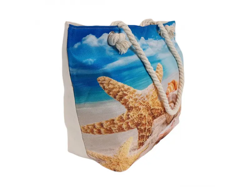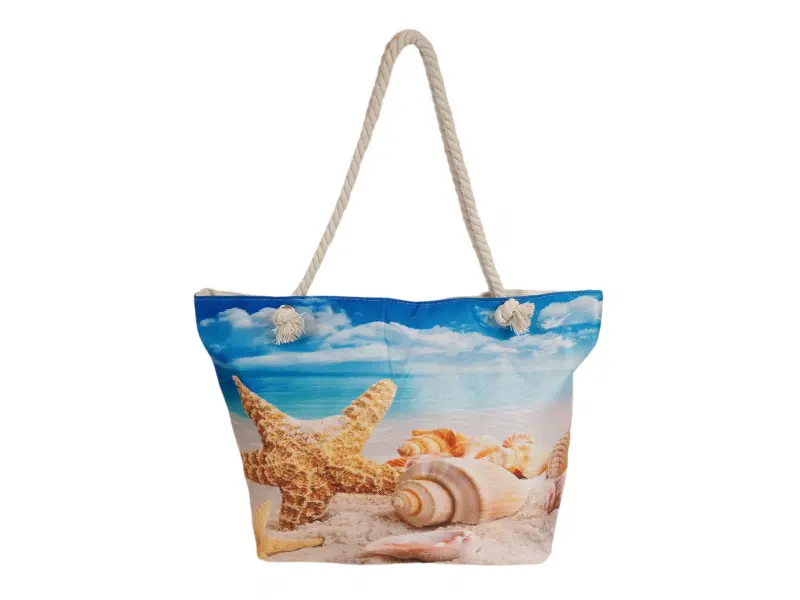 Ενδιαφέρουσα τσάντα θαλάσσης Μεγάλη τσάντα θαλάσσης από ποιοτικό ύφασμα με σχέδιο τοπίου, μία θήκη με φερμουάρ και άνετες λαβές από σχοινί.