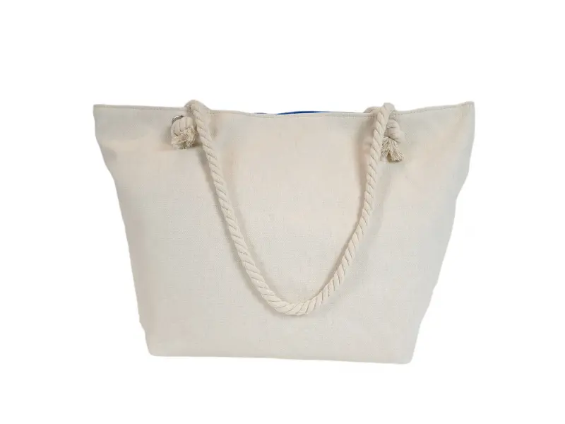 Μεγάλη τσάντα θαλάσσης από ποιοτικό ύφασμα με σχέδιο τοπίου, μία θήκη με φερμουάρ και άνετες λαβές από σχοινί.