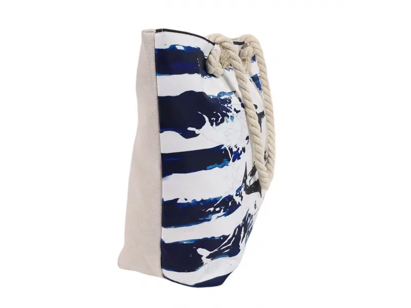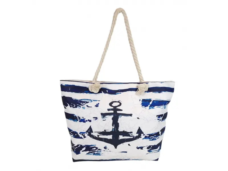 Τσάντα θαλάσσης με άνετα λουράκια Ποιοτική τσάντα θαλάσσης με σχέδιο άγκυρας, μία θήκη με φερμουάρ και ανθεκτικές λαβές από σχοινί.