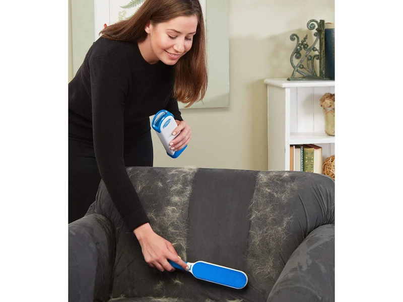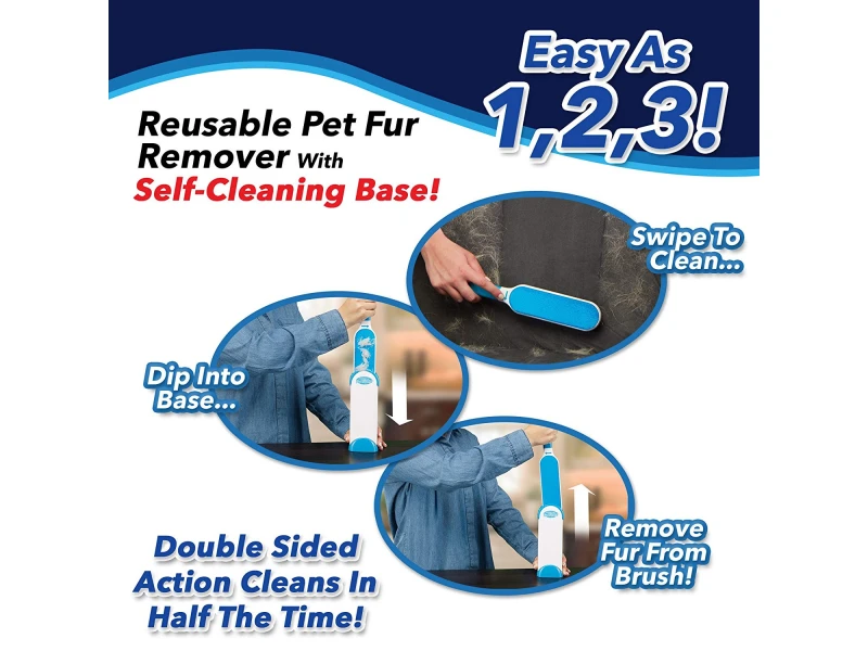 Αφαιρεί τρίχες και τρίχες. Είναι ιδανικό για τον καθαρισμό ιχνών κατοικίδιων (τρίχες από σκύλους, γάτες και άλλα). Το πινέλο είναι διπλής όψης και εξοικονομεί χρόνο. Ο καθαρισμός της ίδιας της βούρτσας είναι εκπληκτικά απλός - το βάζετε στο δοχείο και το