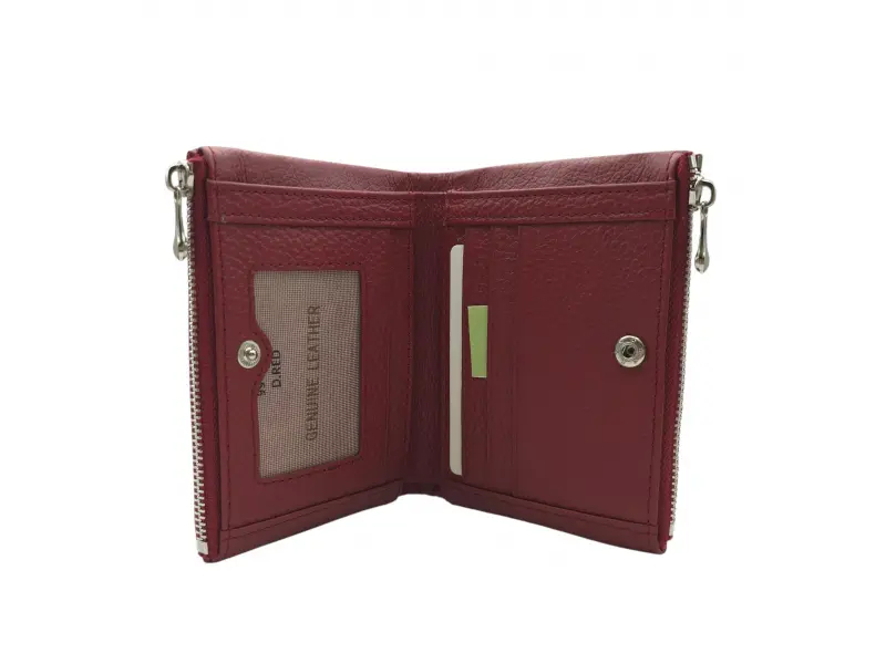 Συμπαγές γυναικείο πορτοφόλι - Γυναικεία τσάντα από γνήσιο δέρμα. - Κλείσιμο με κουμπί κλικ. - Θήκες για κάρτες. - Θέσεις για χαρτονομίσματα. - δύο τσέπες για κέρματα με φερμουάρ.