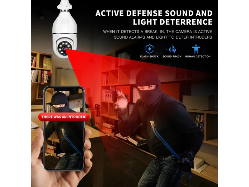 Η πρωτοποριακή κάμερα Bulb Dome με γωνία θέασης 360° και ενσωματωμένο μικρόφωνο είναι ένα ιδανικό προϊόν για κρυφή βιντεοπαρακολούθηση, οικιακή, γραφείο ή εμπορική επιτήρηση. Η κάμερα Bulb Dome λειτουργεί σε λειτουργία ημέρας και νύχτας, καθιστώντας την απαραίτητος βοηθός ελέγχου. Λειτουργεί με την εφαρμογή για κινητά YI IoT κατάλληλη για iPhone και Android. Η κάμερα Bulb dome είναι εξαιρετικά εύκολη στην εγκατάσταση. Διαθέτει ενσωματωμένο μικρόφωνο και ηχείο υψηλής ποιότητας για αμφίδρομη σύνδεση ήχου. Χαρακτηριστικά: Pixel: 2MP; Ανάλυση: 1920x1080p; Λειτουργία PTZ (κίνηση); Κάμερα Wi-Fi (δεν χρειάζεται καλωδίωση). Αμφίδρομος ήχος (σας επιτρέπει να μιλάτε και να ακούτε καθαρά μέσω του τηλεφώνου σας). Συναγερμός (επιλογή ειδοποίησης κίνησης). Ειδοποιήσεις κίνησης (σε φορητή συσκευή ή επιτραπέζιο υπολογιστή). Τρόπος λειτουργίας νύχτας και ημέρας. Έγχρωμη νυχτερινή όραση. IR + Λευκό + LEDs δίοδοι; Ανθεκτικό στη σκόνη και την υγρασία. Cloud αποθήκευσης? Εφαρμογή: YI IoT; Διασύνδεση ισχύος: E27; Τάση τροφοδοσίας: 220v-240v AC Το σετ περιλαμβάνει: 1 x κάμερα; 1x πρίζα E27; 1 x εγχειρίδιο χρήστη στη ΒΟΥΛΓΑΡΙΚΗ ΓΛΩΣΣΑ 1 x συνδετήρες.