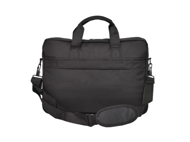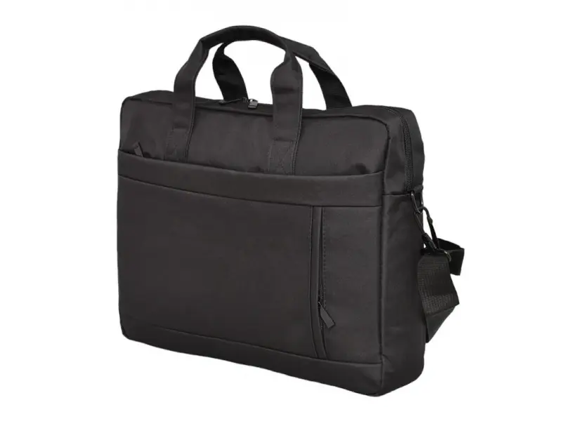 Μαύρη υφασμάτινη τσάντα φορητού υπολογιστή Υφασμάτινη τσάντα με θήκη για φορητό υπολογιστή. Κύριο διαμέρισμα με φερμουάρ. Δύο εσωτερικές τσέπες. Δύο μπροστινές τσέπες με φερμουάρ. Λαβές για μεταφορά στο χέρι. Εξαιρετικά μακριά, ρυθμιζόμενη λαβή. Λουράκι στο πίσω μέρος για σύνδεση στη λαβή μιας βαλίτσας